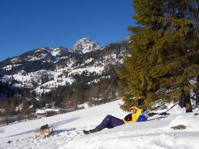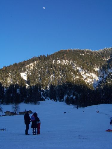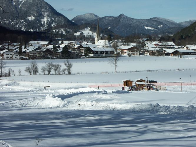 Nach dem Mittagessen machten wir uns auf zum verschneiten Strand von Bayrischzell.