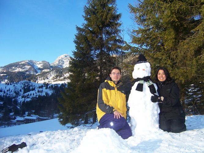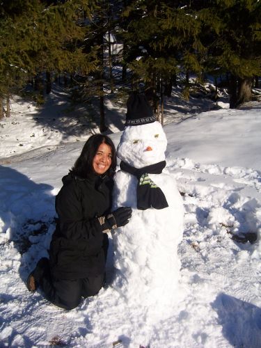 Debido a que la nieve se pegaba mejor hoy y nosotros queríamos disfrutar el último momento, hicimos otra vez un hombre de nieve.