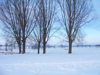 Nicht weit entfernt ruhte auch ein kleiner See still in der Winterlandschaft.