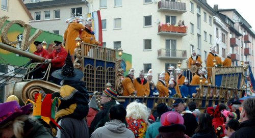 Die Mainzer Hofsänger I will finish with a very famous choir from Mainz. You see them on the wagon below which is always one of the last and largest in the parade. Die Mainzer Hofsänger (the Mainz court singers) form always the end of the big TV show. They are a rather good choir and they have also an own website (in German) you can have a look on: