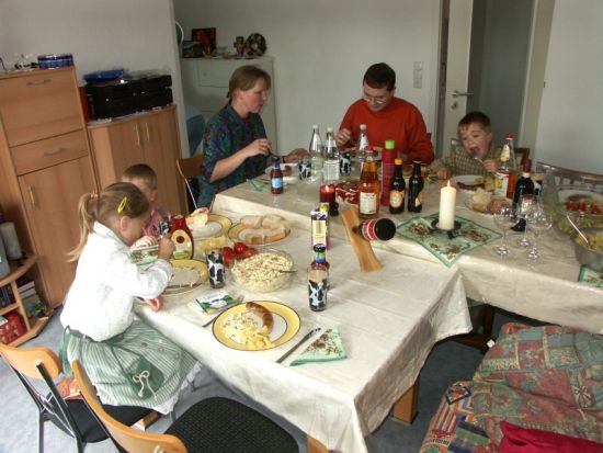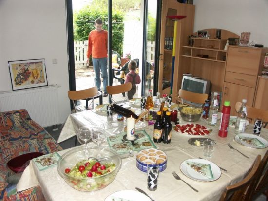 My friends came with their three children and also my mom was still there. So we needed a bit of food and moved the two tables together. My old one from the former flat is standing most of the time outside on the terace now, while I bought a new with four chairs for eating in the living room. The kitchen is too small for a table.