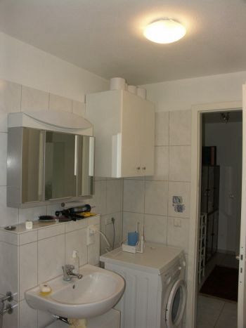 In the bathroom we installed a new hanging closet in order to have some space. Also the washing machine is new.