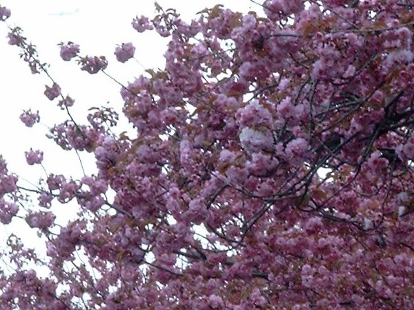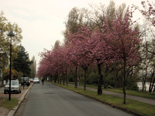 A few days letter (around April 15-17th) the Japanese cherry trees in our street started to be in blossom. They are just in front of my door. It is wonderful to go along by bike going to work or coming back home. The weather on the photo is perhaps not ideal, but realistic. ;-)