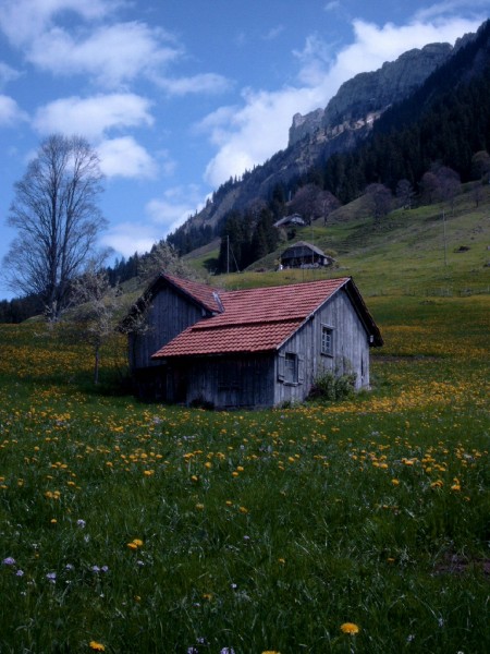 The second part of our hiking became finally a bit adventerous. Although it was clear that we wanted to go down to the little town Schüpfheim and go back from there with the train, it turned out that to find the way down was not so easy. We had only a very rough map printed out from the Internet, and the way we planned to go was not marked. The marked way to Schüpfheim however went always up instead of down. Nevertheless we stayed on it, since it was more secure to follow the signs than to get lost in side valleys. In the end we had to climb the top a mountain from where you could look 700 meters down to the villlage (photo on the left). So our trip became a bit harder than expected and we were rather tired afterwards. But it was a very nice day. |