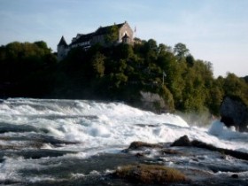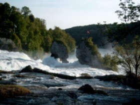 The Rheinfall near Neuhausen is only about 26 m high but rather wide.