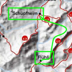 The map on the left shows the part of inner Switzerland where we made our walk. If you click on it you get a wider overview where in Switzerland the region is located. |